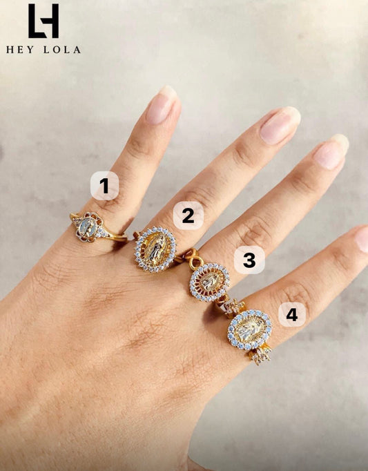 Anillos Ajustables de la Virgen con Detalles de Zirconia