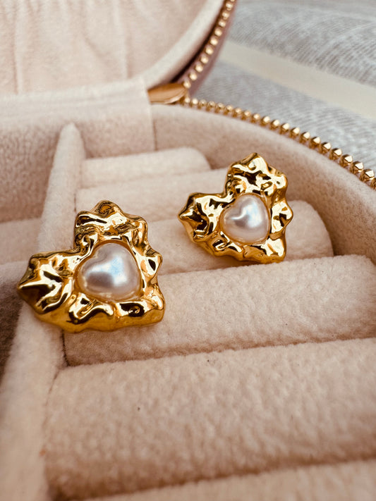Aretes corazón con perla