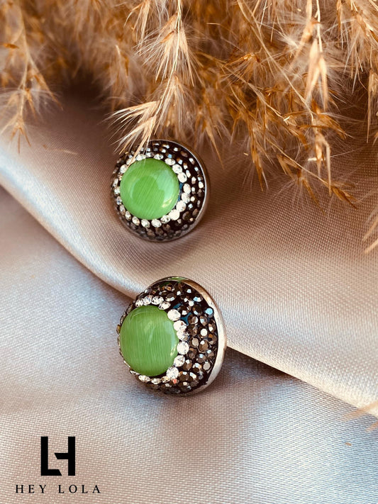 Aretes de Botón con Cristales y Color