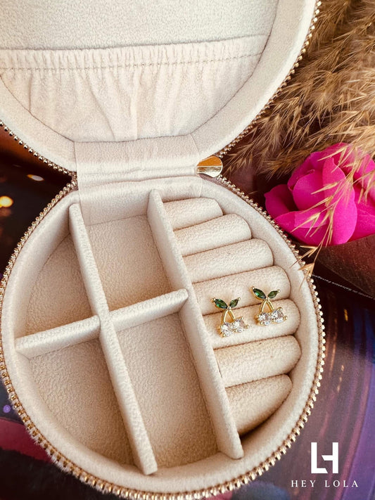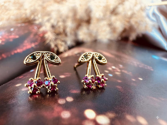 Aretes de Cereza con Cristales - Chapa de Oro 14k