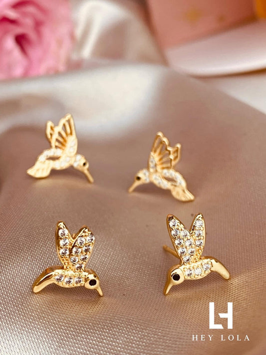 Aretes de Colibrí con Cristales - Chapados en Oro