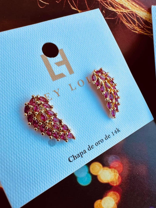 Aretes de Alas de Ángel con Cristales - Chapa de Oro 14k