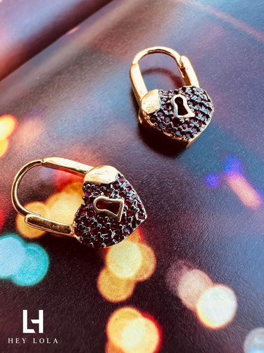 Aretes de Candado en Forma de Corazón con Cristales