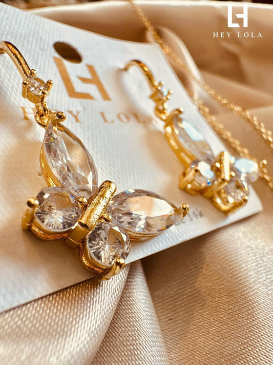 Aretes de Mariposa con Cristales - Chapados en Oro