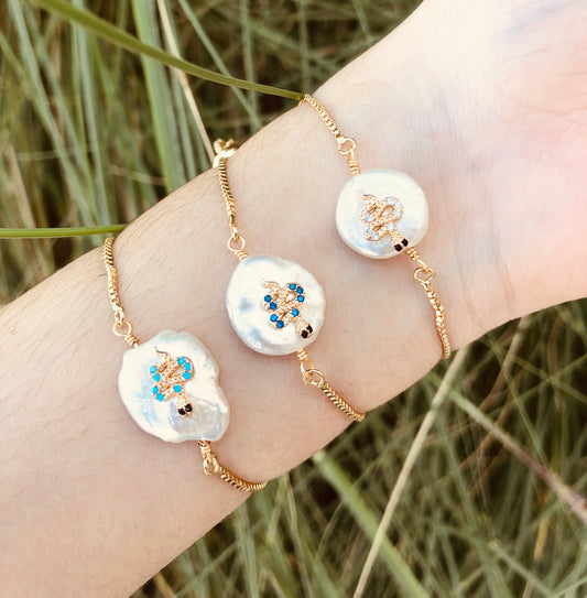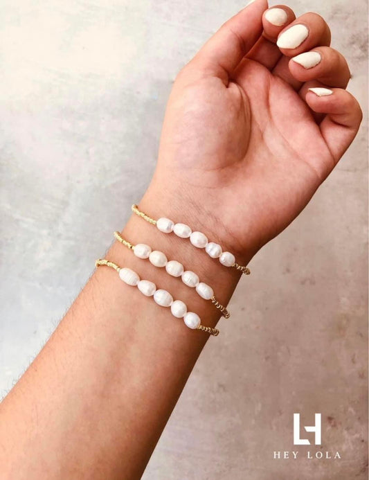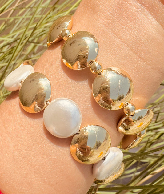 Pulsera de Perlas Cultivadas con Detalles Dorados