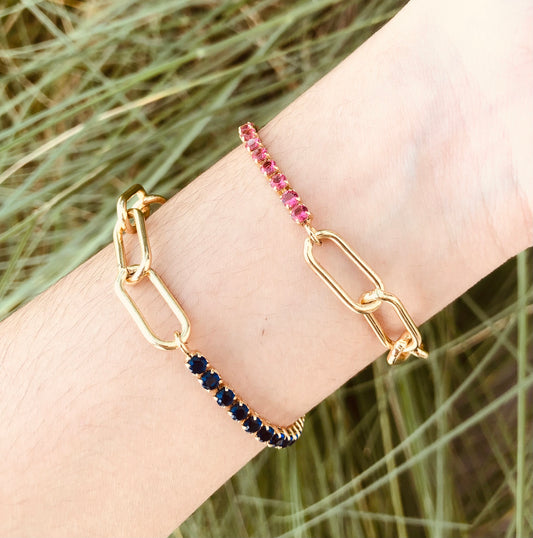 Pulsera de eslabones con detalles de zirconias chapada en oro de 18K