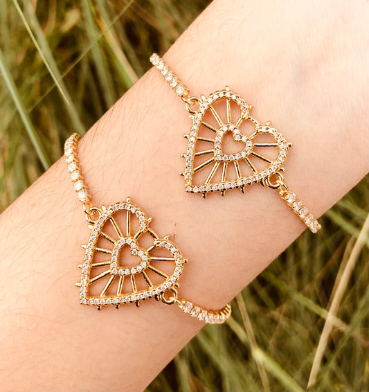 Pulsera de Corazón con cristal Chapa de Oro 14K