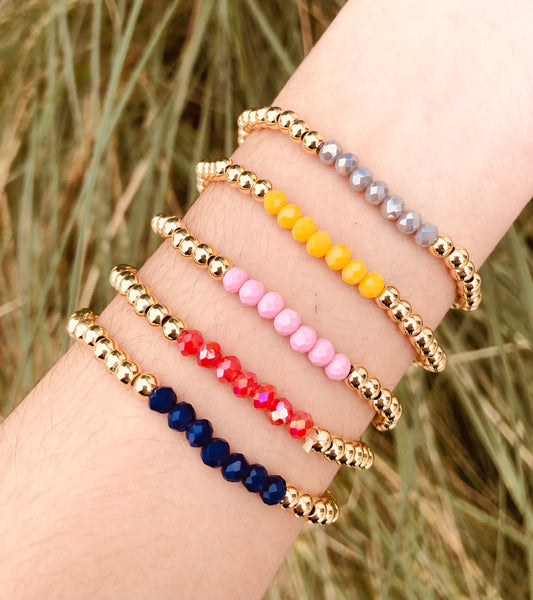 Pulseras con cuentas de colores y detalles dorados