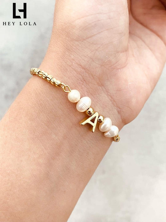 Pulsera Personalizada con Inicial y Perlas Naturales