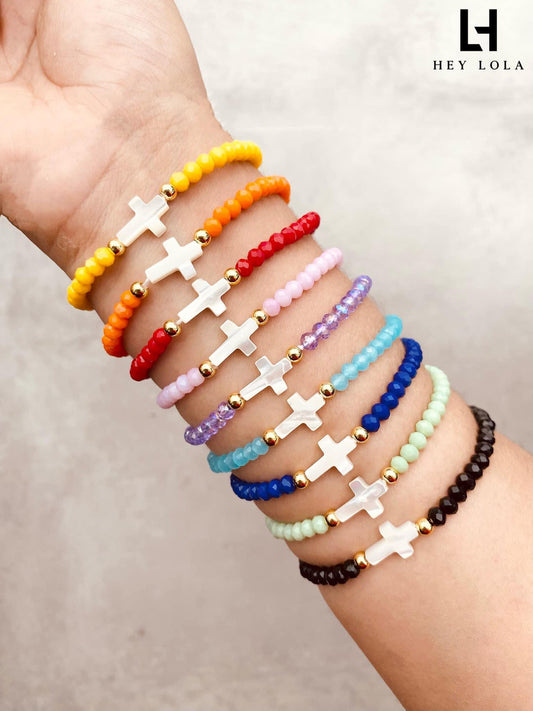 Pulseras de Cuentas Facetadas con Cruz de Nácar