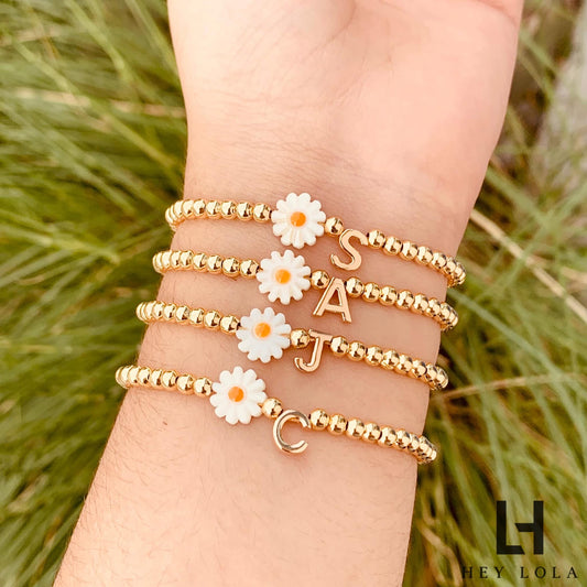 Pulsera Personalizada con Inicial y Detalle de Margarita