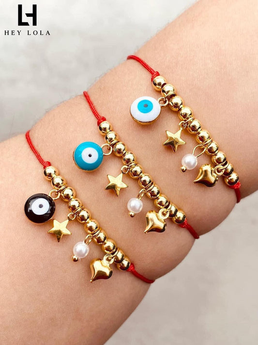 Pulsera Protectora con Hilo Rojo y Dijes Chapados en Oro