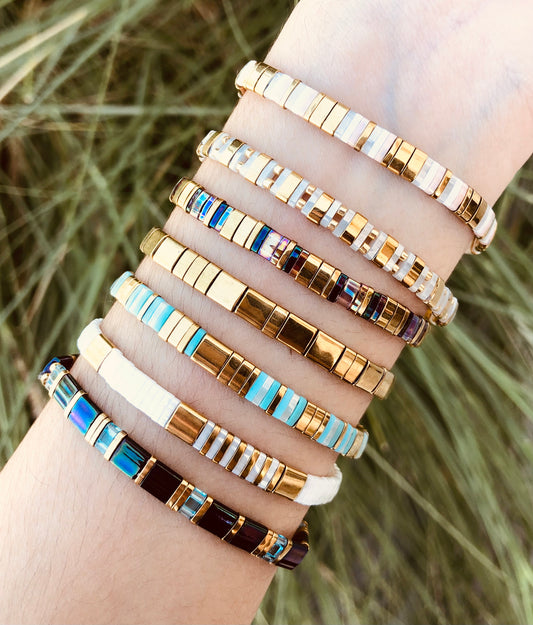 Pulseras Personalizadas con Inicial y Detalles en Nácar y Oro