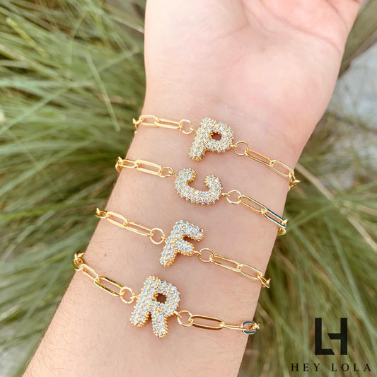 Pulseras personalizadas con inicial chapada en oro de 18K