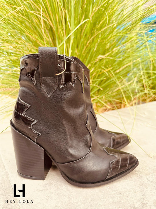 Botín Vaquero Negro con Estilo Cocodrilo